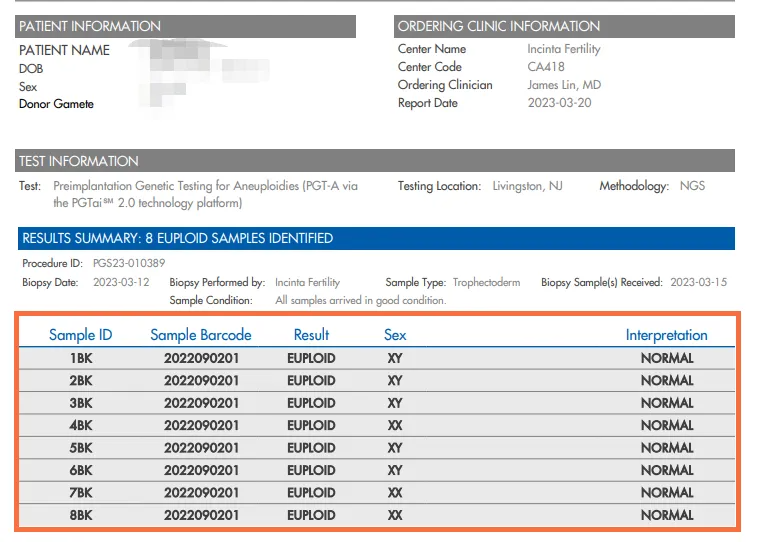 最新喜报:客户送检的8颗囊胚全部通过PGT筛查,通过PGT筛查率高达100%!光看这份检测结果,你很难想象这个家庭曾经经历过3次进周失败了……从3次进周失败,到...